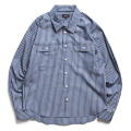 シャツのデザインは左右の胸にフラップ付きのポケットを配したワークタイプ。