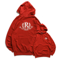 Rマークをエンブレム調にアレンジしたグラフィックのパーカー。