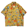 レーヨンの生地を使用した総柄のシャツ。