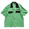 襟と胸ポケットの配色はヴィンテージのボウリングシャツを彷彿とさせる色使いを取り入れ、