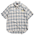 レーヨン100%のオンブレチェックを使用した半袖のワークシャツ。